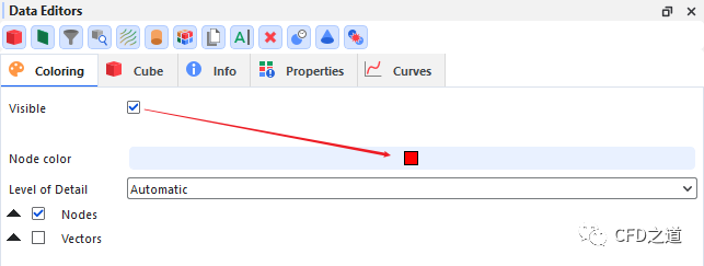 进入Coloring选项卡,激活选项 Visible并指定Node Color为红色,如下图所示。