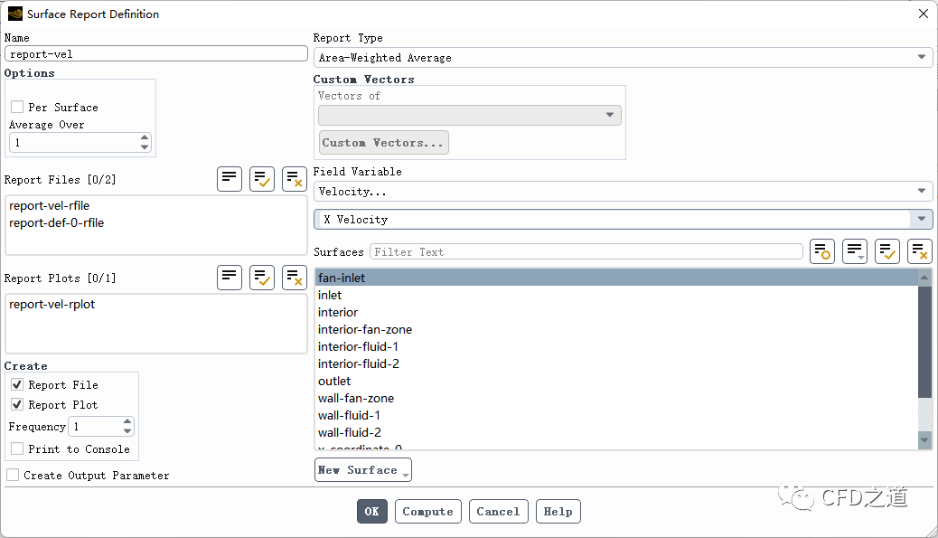监测fan边界的压力与速度,以及风扇下游边界的压力。