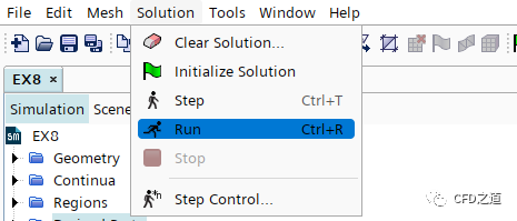 点击菜单项Solution → Run开始计算