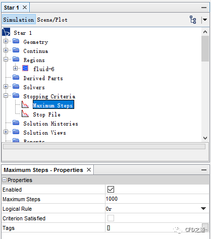 鼠标选中模型树节点Stoping Criteria,属性窗口设置Maximum Steps为1000