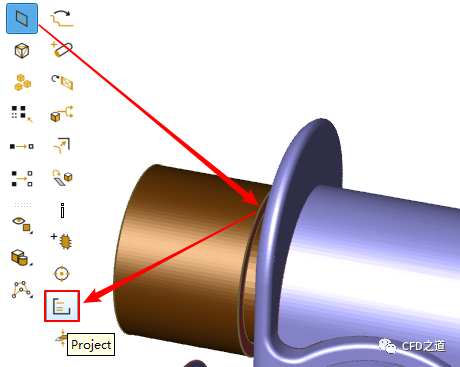 选中前面分割出来的圆环面(利用Zone Selection Filter),点击工具栏按钮Project或使用快捷键CTRL+P投影面
