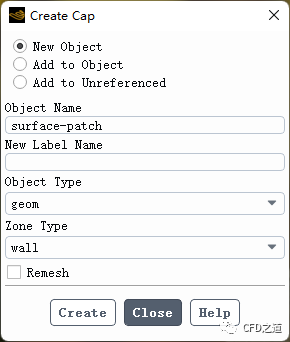 弹出Create Cap对话框,如下图所示设置参数,点击按钮Create创建边界
