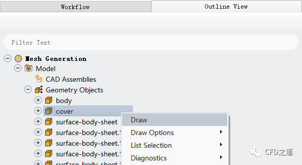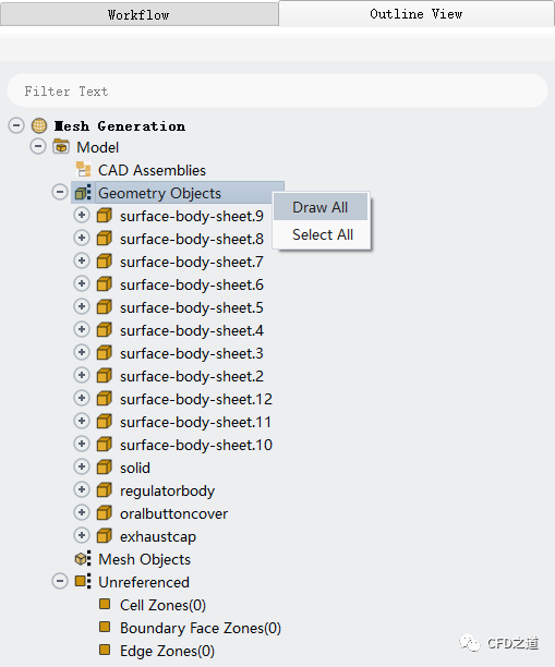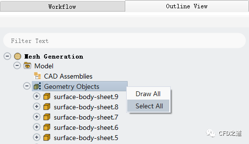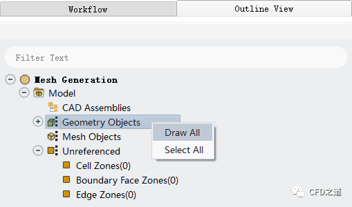 右键选择模型树节点Geometry Objects,选择弹出菜单项Draw All