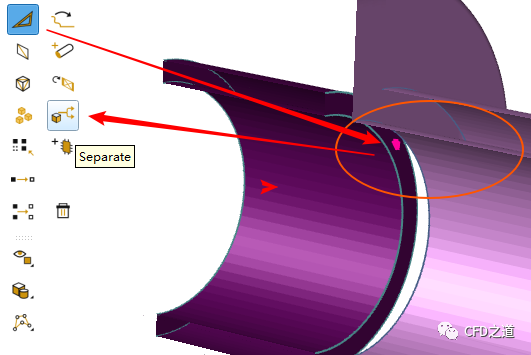点击工具栏按钮Separate分割面(或使用快捷键ctrl+shift +s)