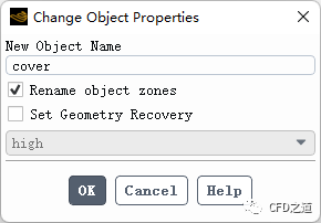 如下图所示修改部件名称为cover,激活选项Rename object zones,点击OK按钮修改名称