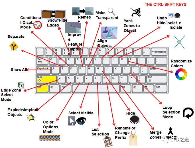 注:此时可用快捷键CTRL+SHIFT+O改变区域颜色以方便查看。也可以利用快捷键CTRL+SHIFT+C以及CTRL+R以随机 颜色显示模型。