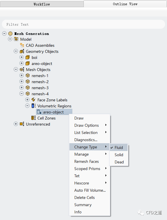 右键选择模型树节点 Cell Zones,点击弹出菜单项Draw All Boundaries 显示生成的网格