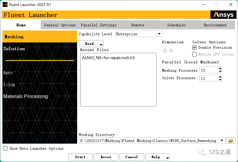 本案例演示利用Fluent Meshing对导入的STL几何文件进行面网格重构,以方便后续的体网格生成。