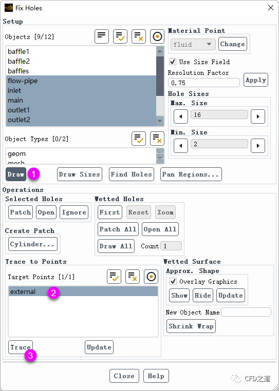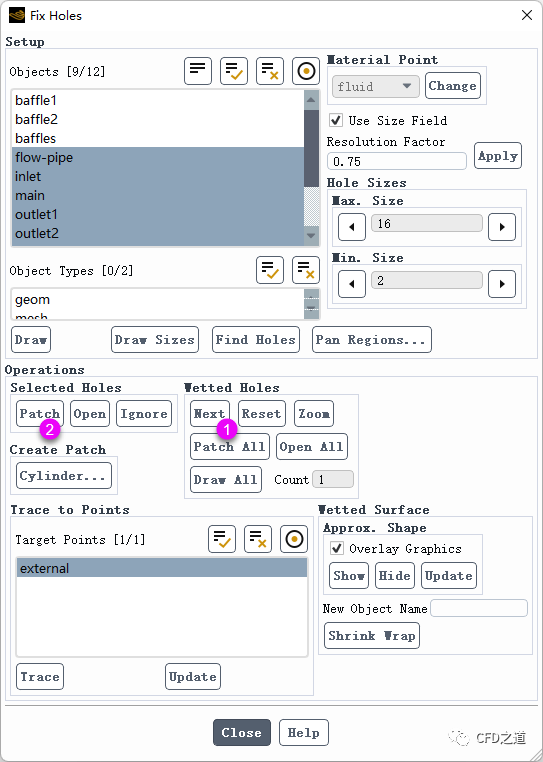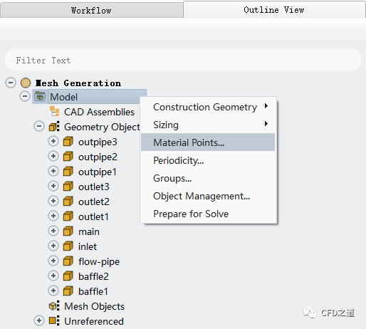 注:进出口可以导入外部面网格,也可以采用cap的方式在FM中创建网格。导入外部网格时,注意激活选项Append Files