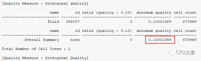 如下图所示,可以看到最低网格质量为0.10001069,可以对网格质量进行优化。