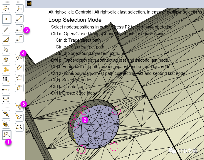 如下图所示操作顺序创建材料点。注意在图形窗口中选择节点之前将选择模式切换到节点选择模式(利用 CTRL+N快捷键进行切换)