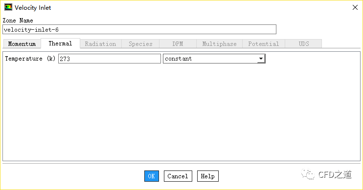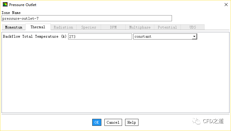 切换至Thermal标签页,设置Backflow Total Temperature为273 k