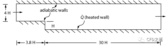 本案例对2D后向台阶的流体流动和对流换热进行了数值模拟。突扩几何导致的流动分离及边界层再附会影响到其后方恒定热流表面的局部换热。本案例利用测量的热流表面的局部Nusselt数分布验证CFD仿真结果。