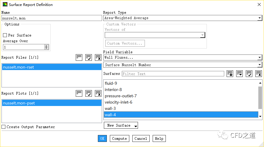 鼠标双击模型树节点Solution > Report Definitions,弹出设置对话框中按下图所示进行设置