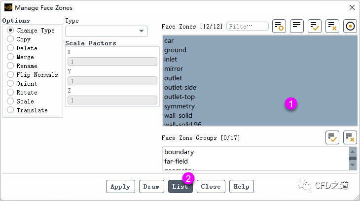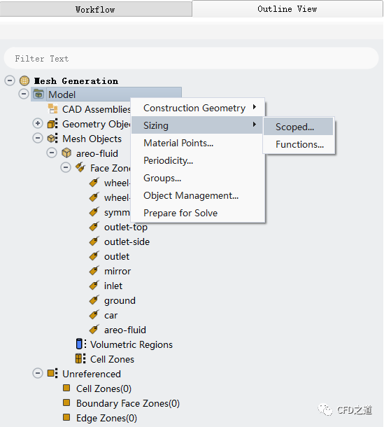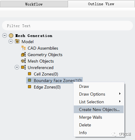 右键选择模型树节点 Boundary Face Zones,点击弹出菜单项Create New Objects… 打开对话框