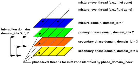 上图引入了domain_id和phase_domain_index的概念。domain_id可以在UDF中用来区分superdomain和主相及次相Domain。superdomain(mixture)的domain_id总是被分配为1,交互domain也用domain_id标识。domain_id不一定按顺序排列,各相的id值可以通过gui界面查看。