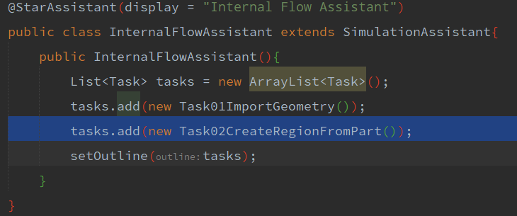助理类充当Assistant中所有任务的“目录”。首先创建这个类是很好的做法,因为其允许在完成任务后测试它们。最初创建类的“模板”,并在完成任务类时将它们的名称按您希望它们出现的顺序添加到此模板中。