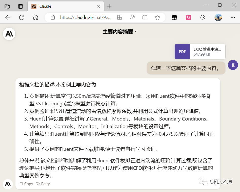 进到Claude网站,然后让Claude总结一下文章的内容,结果是这样式儿的,额,看起来还不错。