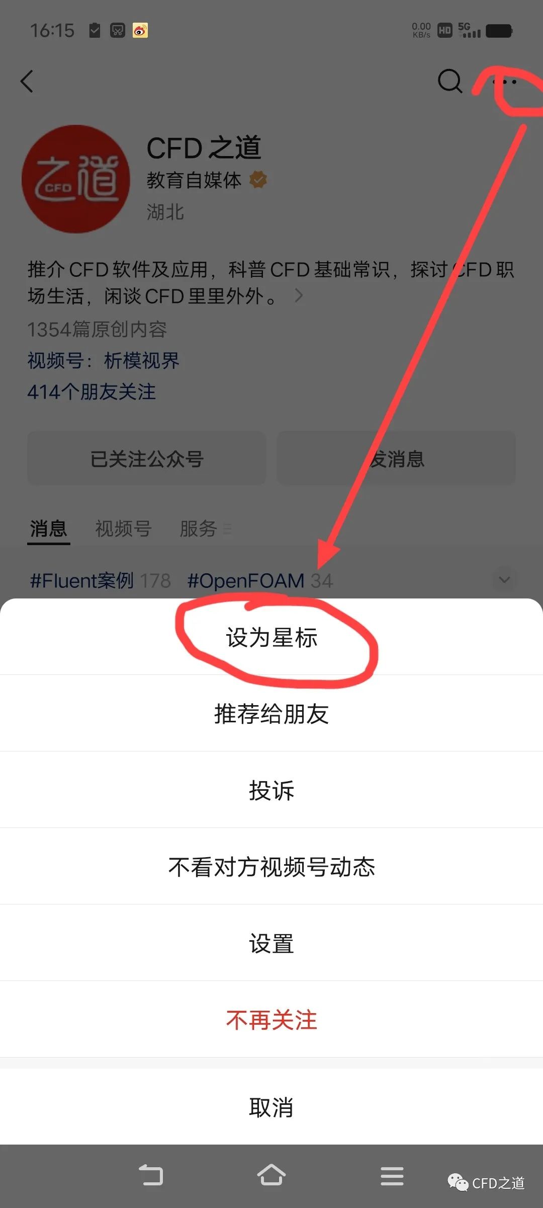 2. 点右上角的三个点,在弹出的菜单中选择“设为星标”。