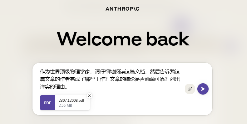进入到Claude2,上传pdf文章,问上一问。