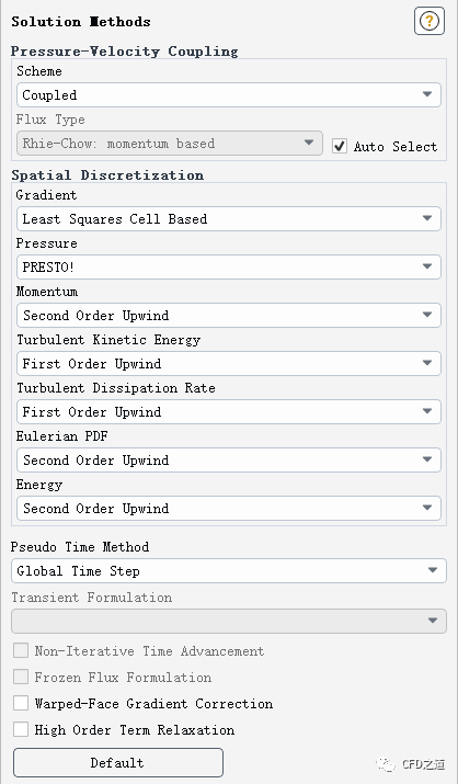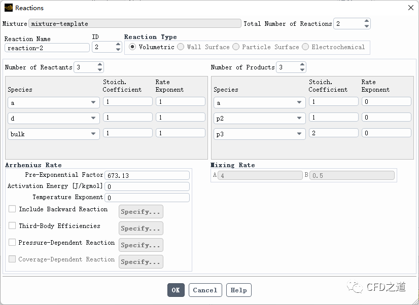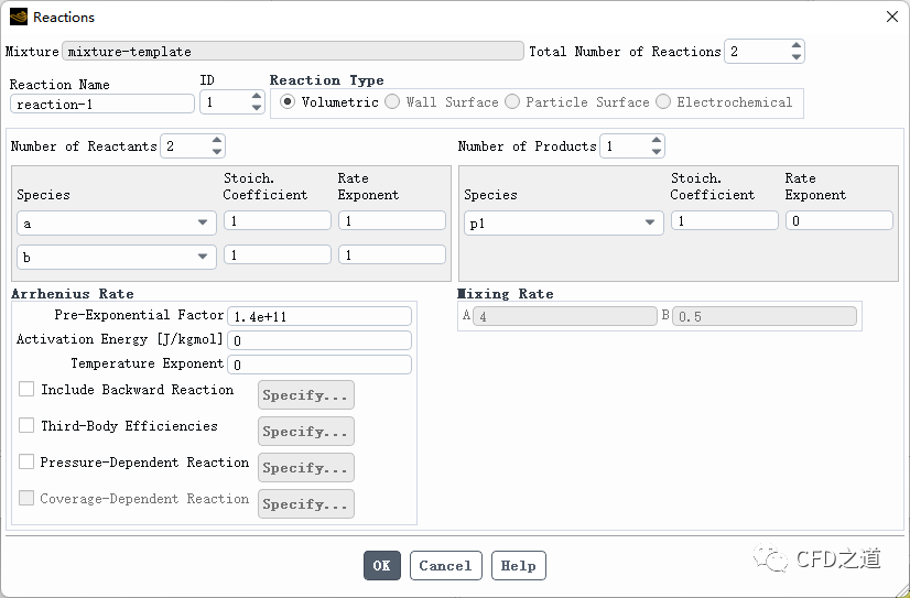 注意:对于具有反应的组分模型,默认启用能量方程。然而对于本案例,流动是等温的,密度也是恒定的。因此不需要求解能量方程。