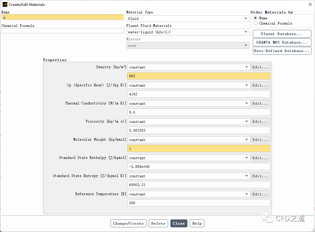 其他参数保持不变,点击按钮 Create/Create替换材料water-liquid