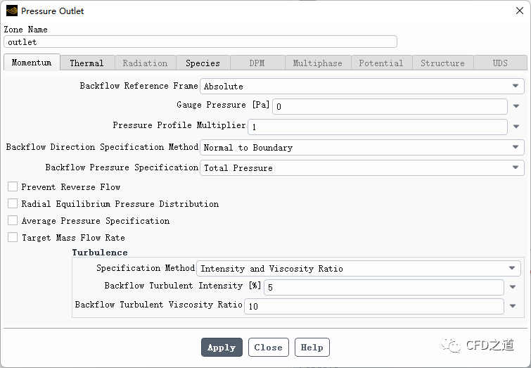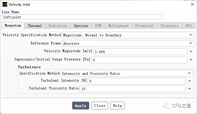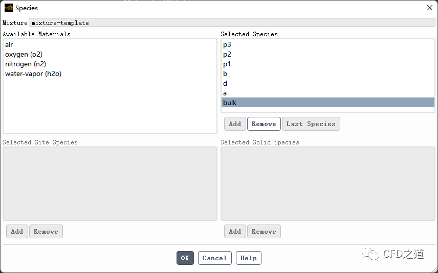 注:因为暂时还没有创建材料介质,所以Species Models对话框的Boundary标签页中没有办法指定材料。