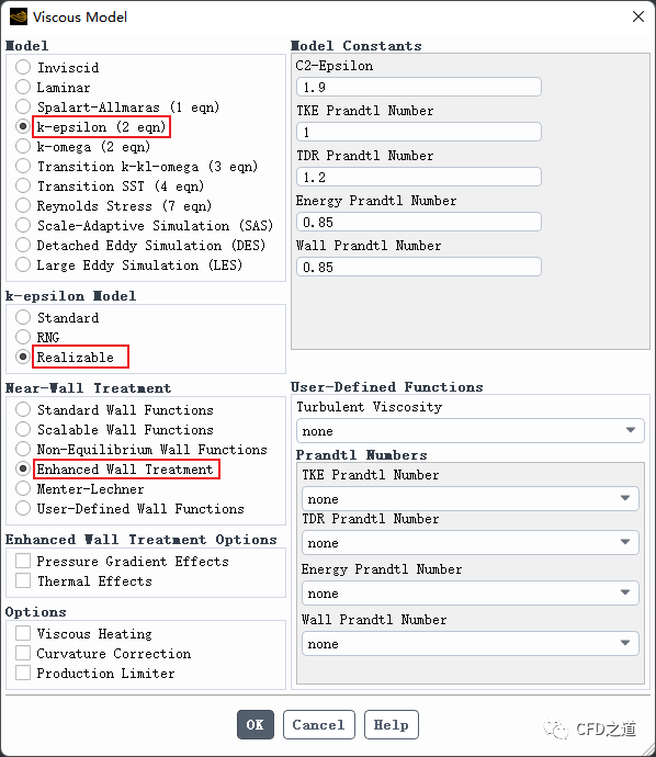 采用 Realiazble k-epsilon湍流模型,启用Enhanced Wall Treatment选项