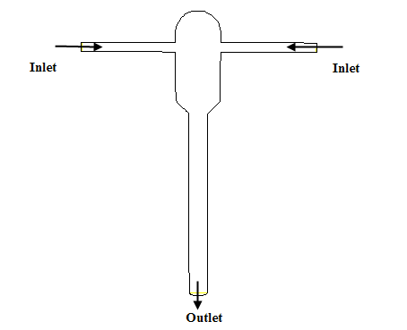 当启用液相微混合模型时,FLUENT会从模型湍流和标量谱中对IEM模型中使用的混合常数进行插值。下图显示了两个反应物在反应器中心撞击的CIJR示意图。