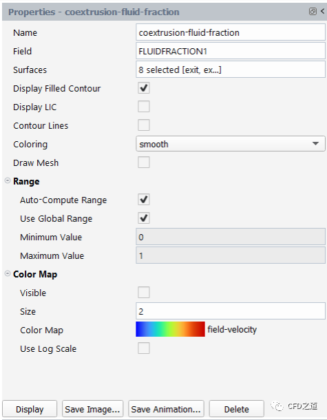 保留其余默认值并点击Display以在图形窗口中查看流体分数轮廓图。