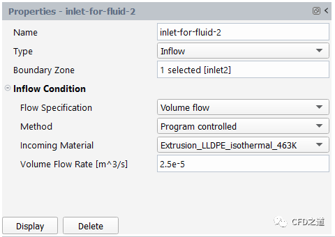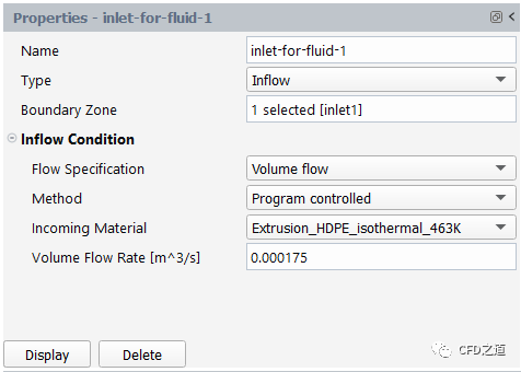 设置 Extrusion_HDPE_isothermal_463K材料的入口条件。 -