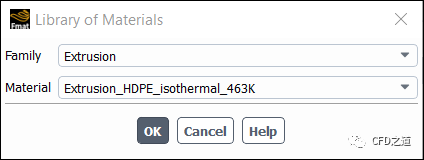 选择Extrusion_HDPE_isothermal_463K作为Material。 -