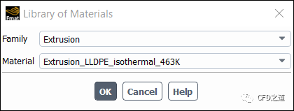 选择 **Extrusion_LLDPE_isothermal_463K **作为 Material。 -