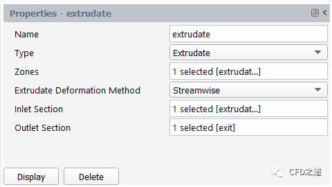 在Mesh Deformations下,选择extrudate以编辑模拟中挤出物出口的默认属性。 -