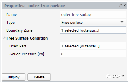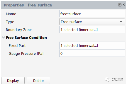 在大纲视图中选择Fluid Boundary Conditions下的free-surface以查看模拟自由表面边界条件。 -