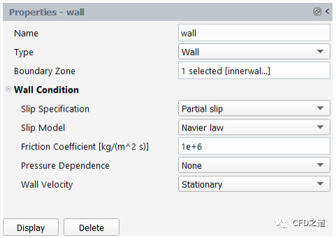 指定Friction Coefficient 为 1e6kg/(m^2 s)。