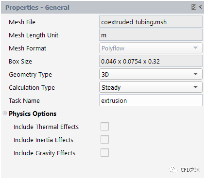 在Setup属性下,点击Read下的Mesh…按钮。也可以使用File菜单,并选择Read > Polyflow Mesh…。 -