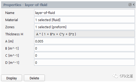 双击模型树节点Setup → Layers → layer-of-fluid 定义layer-of-fluid的属性。 -
