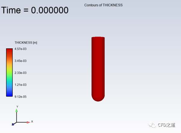 点击按钮Results → Timestep 查看 THICKNESS 分布的动画。