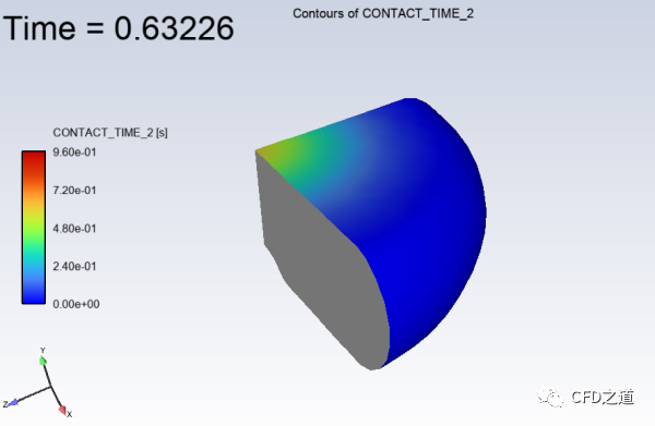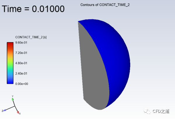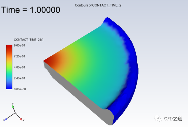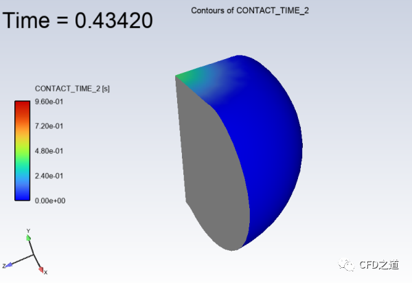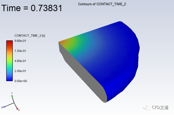 点击按钮Results → Timestep查看接触时间(CONTACT_TIME_2)云图的动画。 -