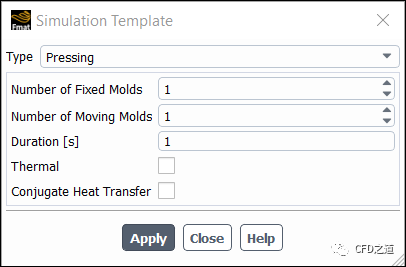 点击Setup → Simulation → Use Template… 显示 Simulation Template 对话框设置压制模拟。 -