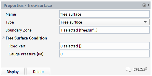 对于 Fluid Zone of Contact,选择 freesurface。 -