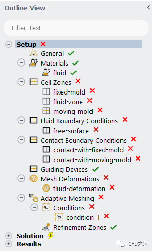 打开大纲视图的 Solution 分支(或使用Ribbon)。在这里可以查看问题设置和其他求解属性。大多数项目表明当前默认值是合适的。