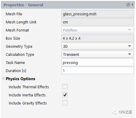 在 Setup 属性下,点击 Read 下的 Mesh… 按钮。在工作文件夹中找到并选择网格文件( glass_pressing.msh)。