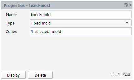 点击Setup → Cell Zones → fixed-mold定义 fixed-mold的单元区域属性。 -