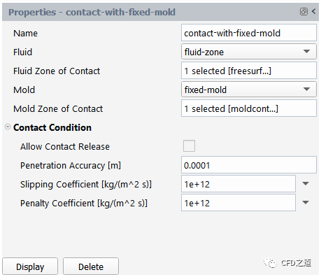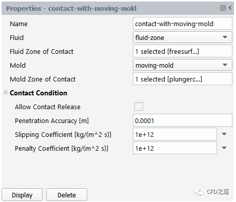 在 Contact Boundary Conditions 下,选择 contact-with-moving-mold -