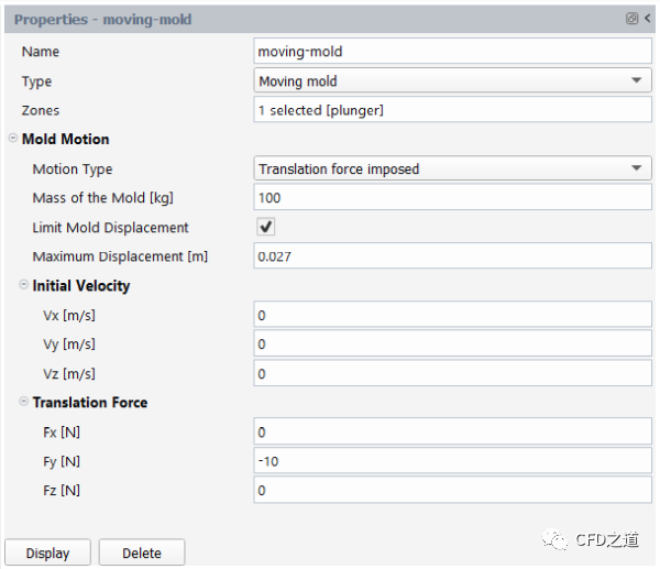 点击Setup → Cell Zones → moving-mold定义 moving-mold的单元区域属性。 -