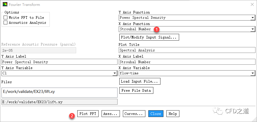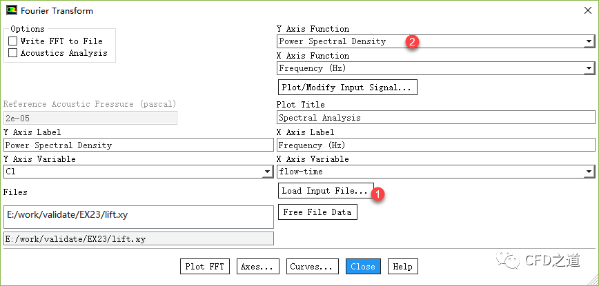 店家那你Load Input File…加载升力监控数据lift.xy,店家按钮Plot FFT显示图形