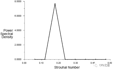 可看出Strouhal数约为0.2,要获取精确的St数,可通过勾选选项Write FFT to File输出计算结果,找出Power Spectral Density最大值对应的St数,如下图所示,其值为0.178。