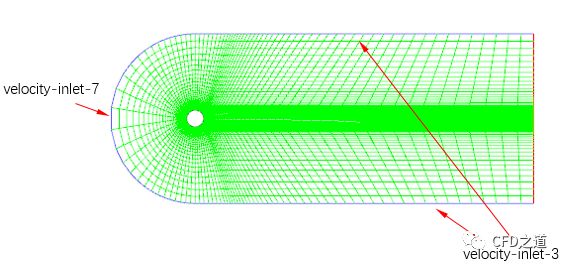 模型中包含两个入口:velocity-inlet-3及velocity-inlet-7,如下图所示。
